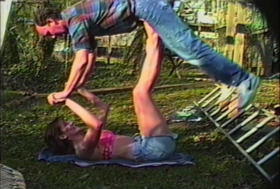 Chandra is a very strong woman although she doesn't look exactly like a bodybuilder. She has a good figure and is attractive. I doubt you'd guess her real power from just looking at her. But Chandra can press about 600 pounds with her legs! Lying on her back near a wall, she demonstrates the most amazing scene on this tape. She raises her foot into the air so that a good-sized man can lie down on the sole of her foot with his pubic bone. Then, with ease, and I mean ease, Chandra gives him an up and down ride by using just one leg! She lifts him up and lets him down again and again as though he were made of straw. Using both legs, the sexy and pretty Chandra raises him up and down like he was a stuffed toy . Chandra also does deep knee bends with the man on her shoulders and goes up on her toes as well. She then takes him outside for more rides on her feet while she braces his hands in hers. Back inside, she uses her feet to lift the man up into the air from off of the floor again and again as though he were her exercise weights.